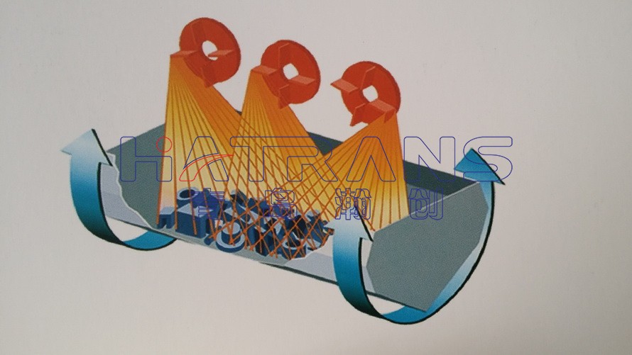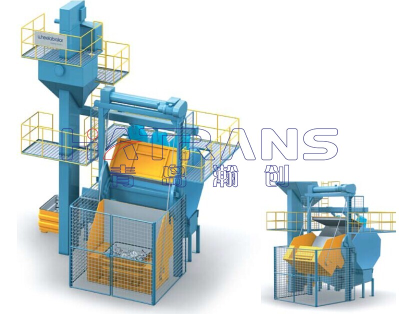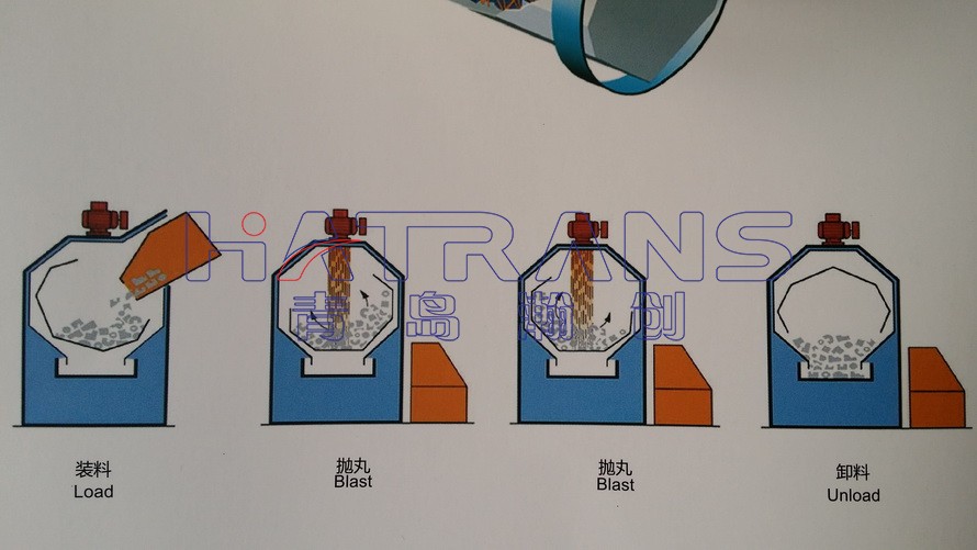HBC多角擺床繞徑向軸線做120°前后擺動(dòng),從而保證工件在柔和的翻滾中被清理干凈。拋丸器位于工作區(qū)域的正上方,鋼丸集中拋射到工件上,實(shí)現(xiàn)最佳利用。
